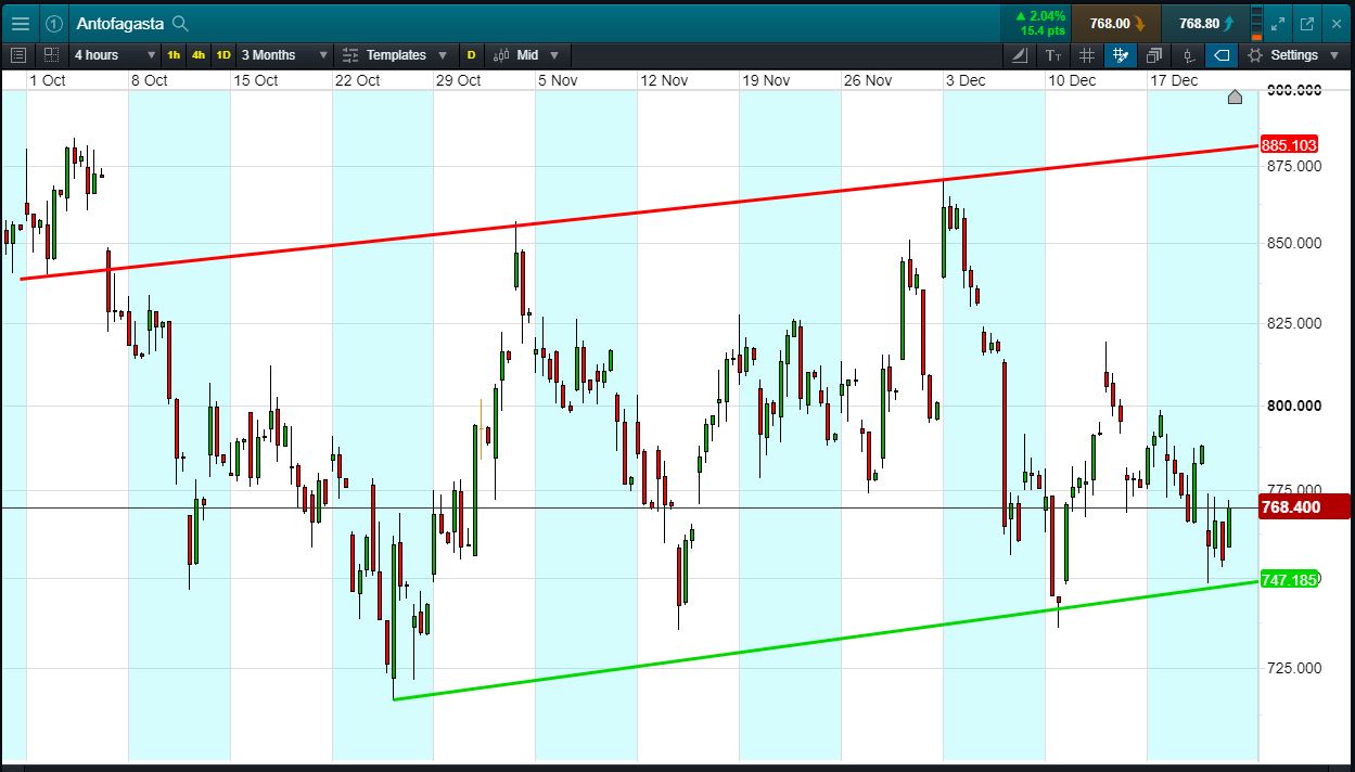 Let’s say you like the Antofagasta range, you think it’s heading back towards 875p again. You decide to buy exposure to £10,000 worth of Antofagasta using a CFD, at the current price of 768p. To do this, you need £2,000.