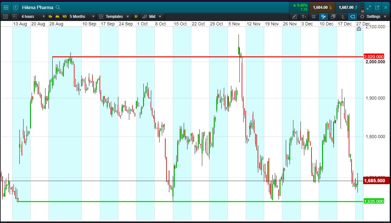 Let’s say you like the range, you think it’s heading back towards 2000p again. You decide to buy exposure to £10,000 worth of Hikma using a CFD, at the current price of 1685p. To do this, you need £2,000.
