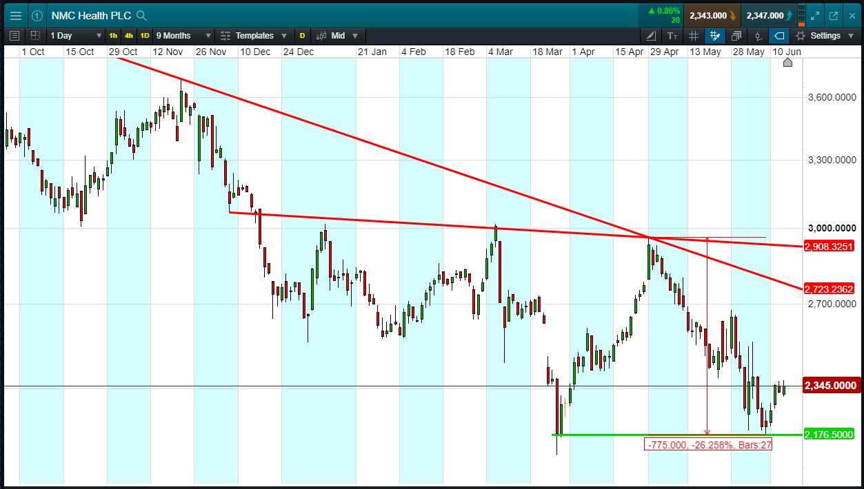 Let’s assume NMC rises to 2700p (+15%). Your profit would be £1500, from your initial investment of £2,000.