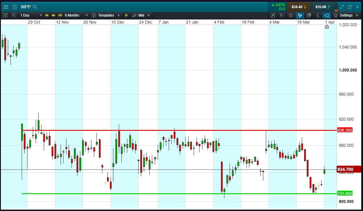 Will WPP break support, or will it rise back to 898p?
