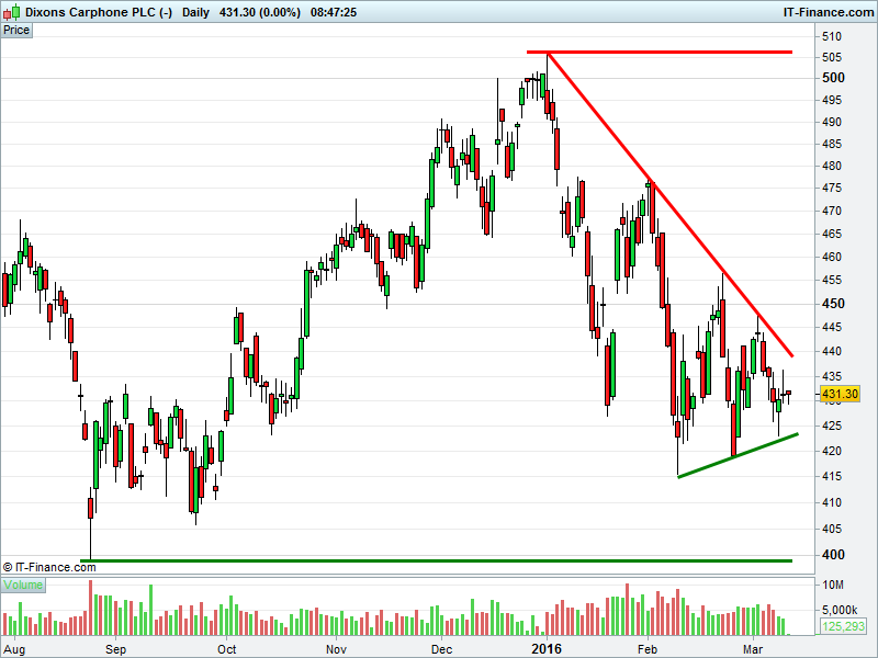 1. Will the price fall towards lows of 400p? or;