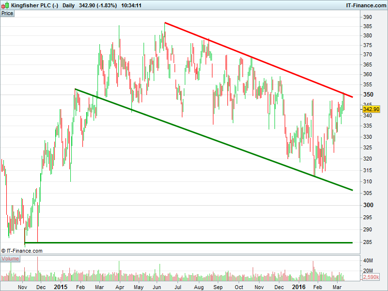 1. Will the price rise towards highs of 385p? or;