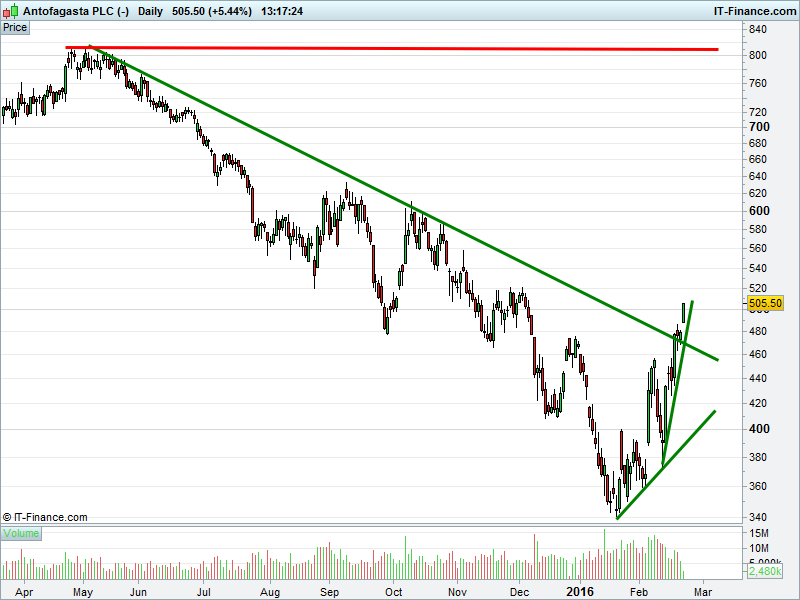 • Breakout from falling trend