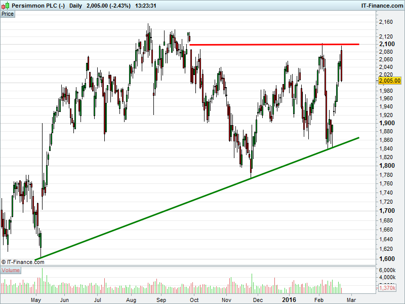 1. Will the price rise above highs of 2150p? or;
