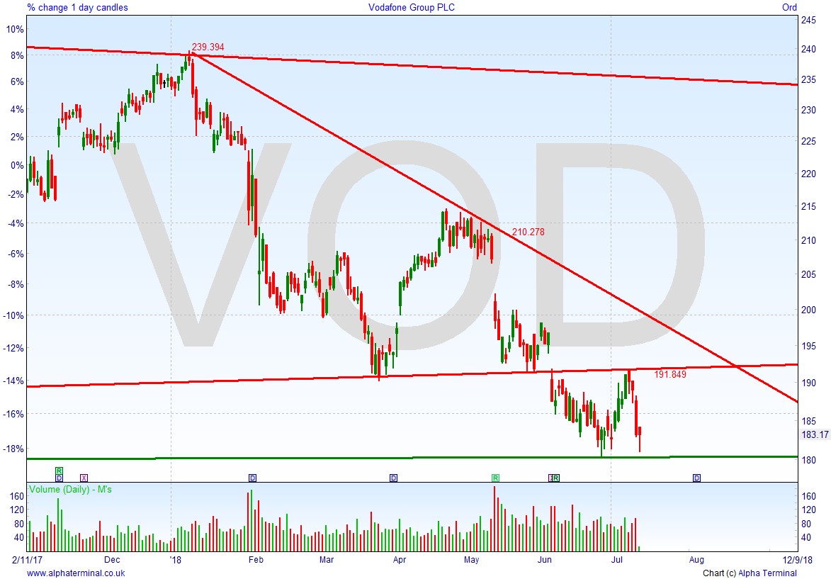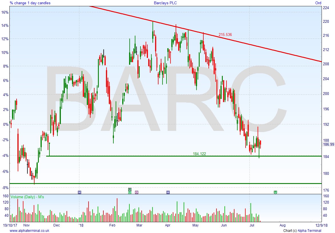 • Will the price fall towards lows of 180p (-1.7%)? or;
