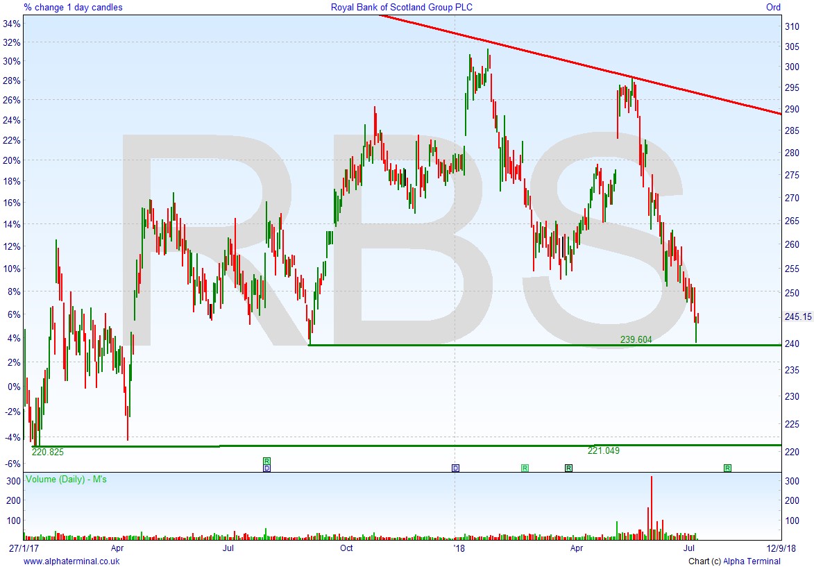 • Will the price fall towards lows of 220p (-10.2%)? or;