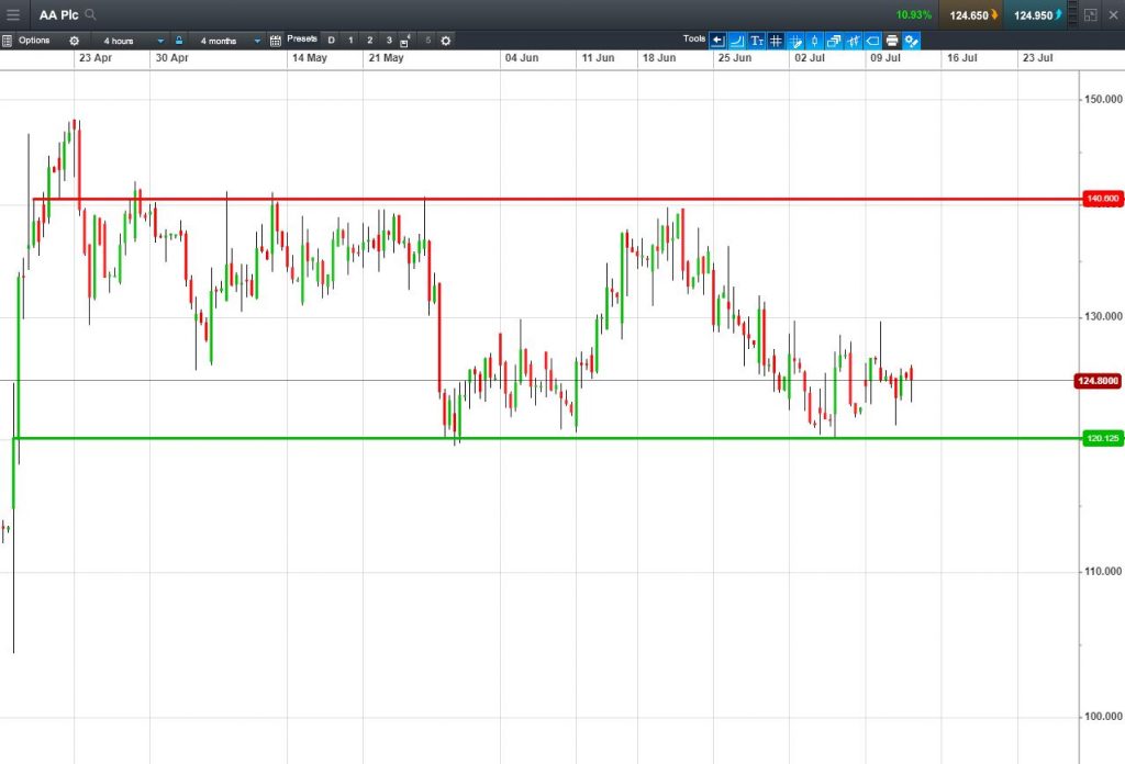 • Will the price fall towards lows of 119p (-4.9%)? or;