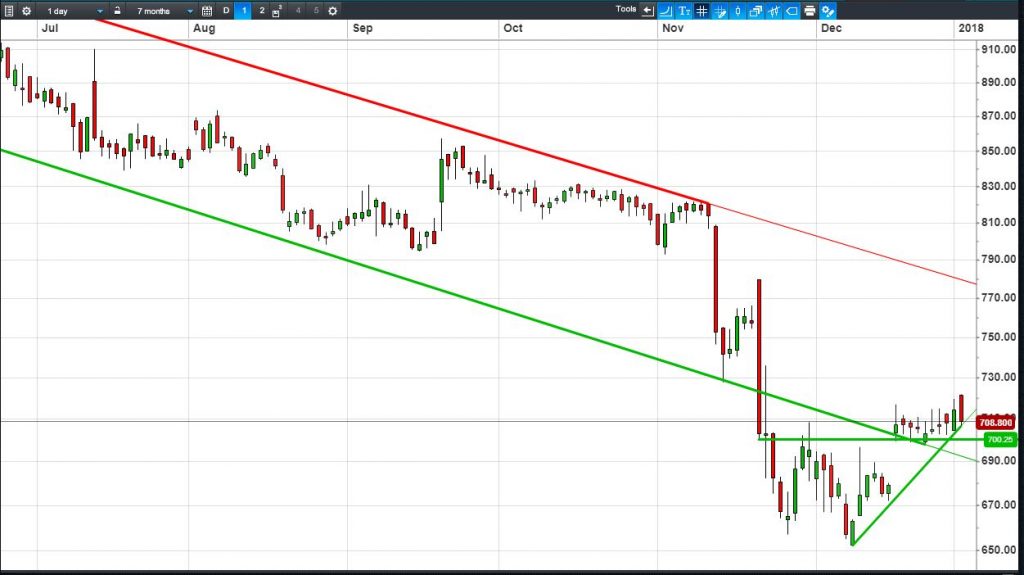 • Will the price fall towards lows of 650p (-8.2%)? or;