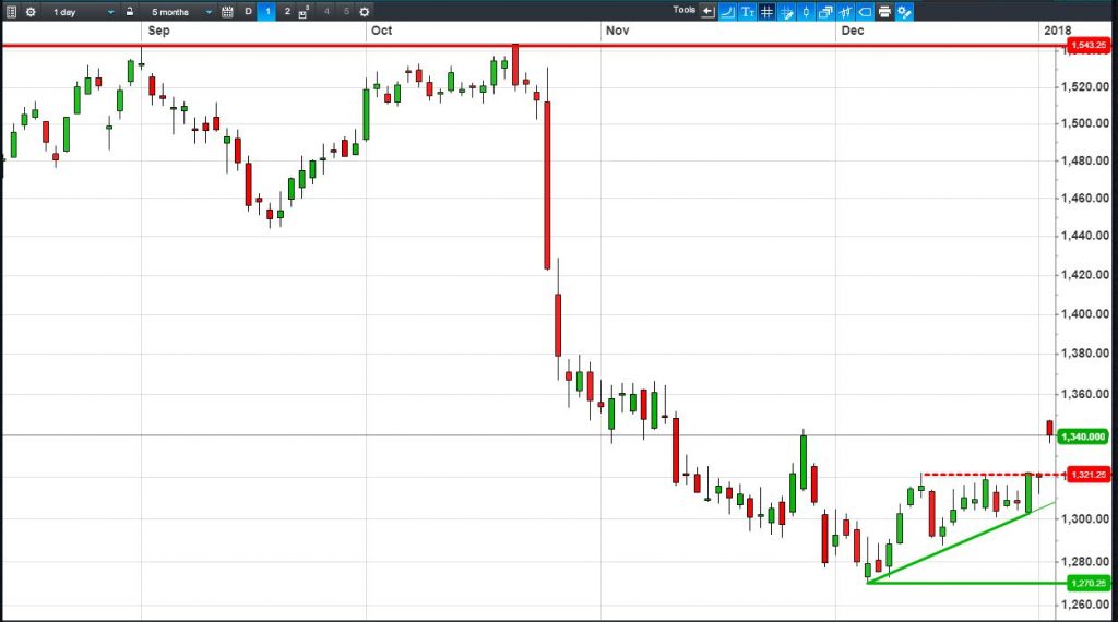 • Will the price fall towards lows of 1270p (-5.2%)? or;