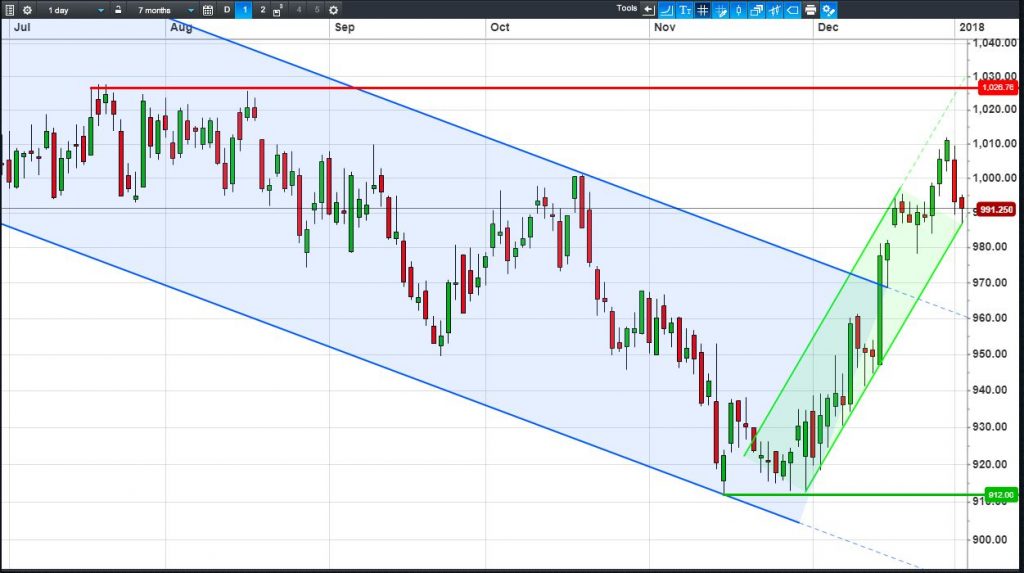 • Will the price fall towards lows of 960p (-3.2%)? or;