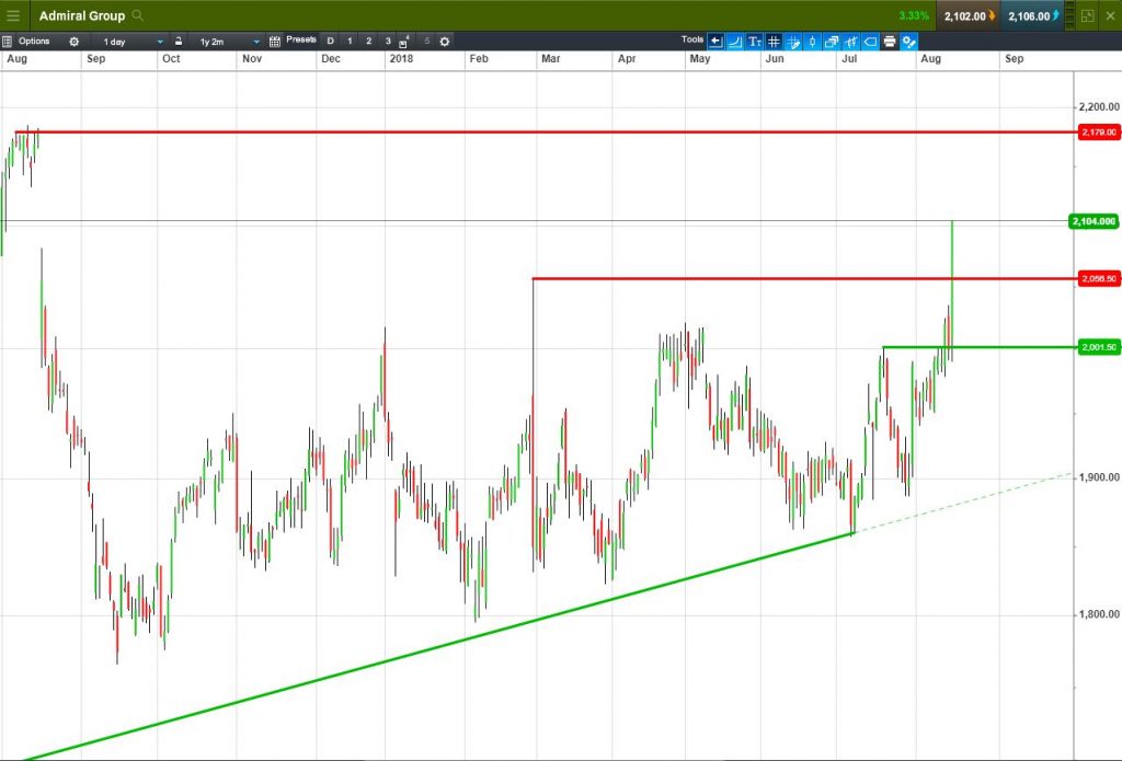 • Will the price rise towards highs of 2101p (+5.3%)?