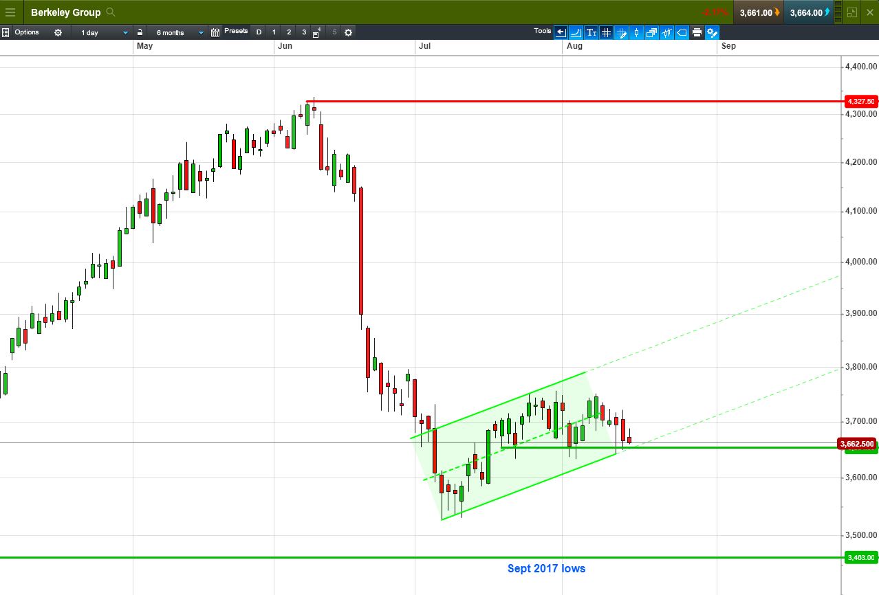 • Will the price fall towards lows of 3463p (-5.4%)? or;