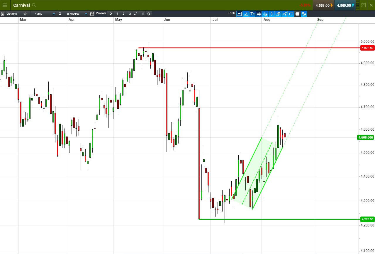 • Will the price rise towards highs of 4972p (+8.8%)?