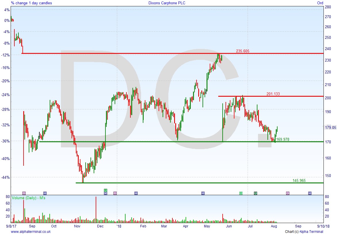 • Will the price fall towards lows of 146p (-18.4%)? or;