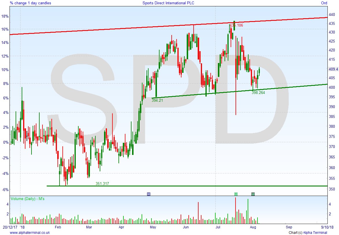 • Will the price fall towards lows of 351p (-14.3%)? or;