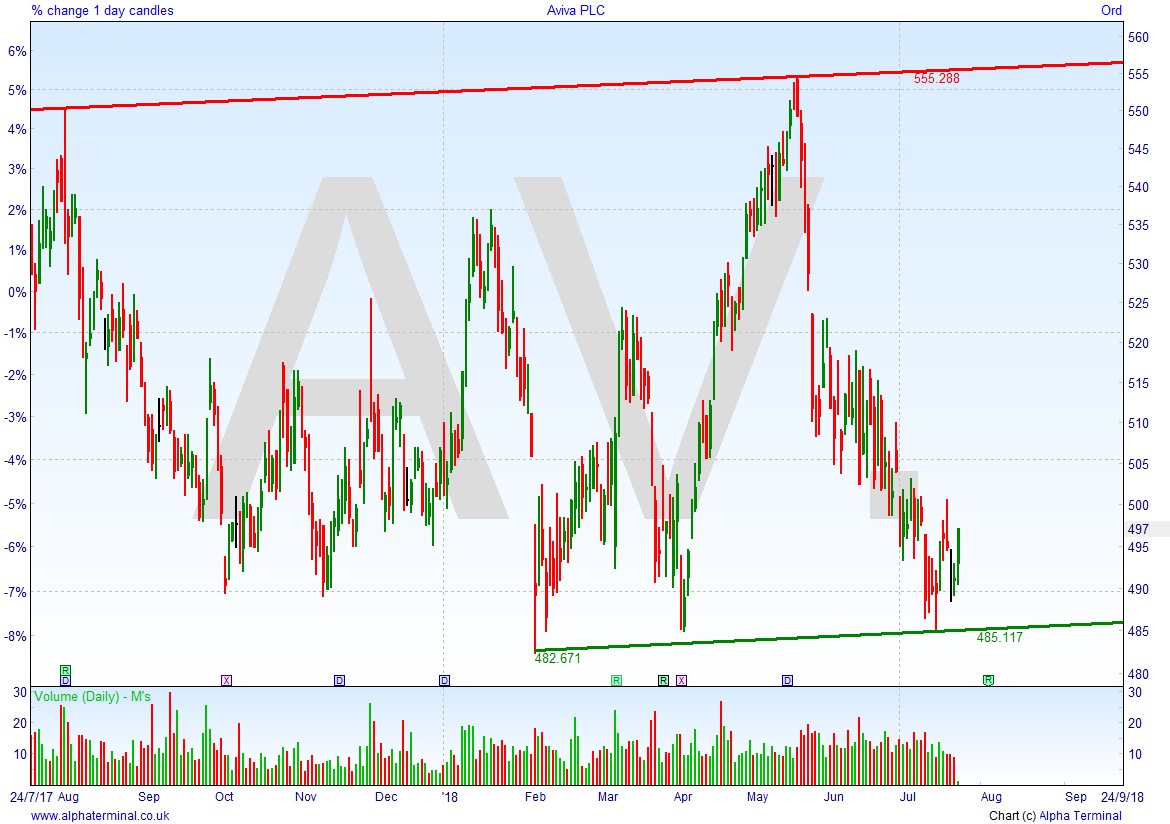 • Will the price fall towards lows of 485p (-2.4%)? or;