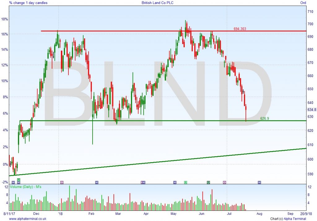 • Will the price  fall towards lows of 639p (-9.5%)?