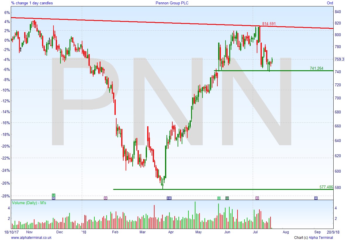 • Will the price fall towards lows of 700p (-7.8%)? or;