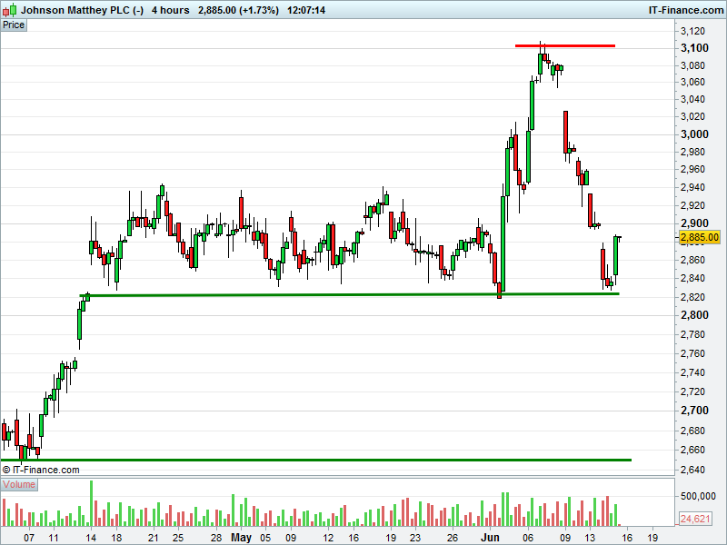 1. Will the price fall towards lows of 2650p (-8%)? or;