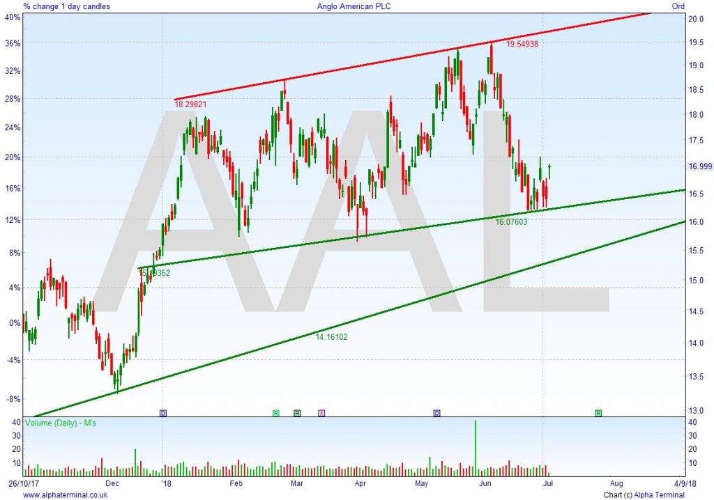 • Will the price fall towards lows of 1600p (-5.8%)? or;