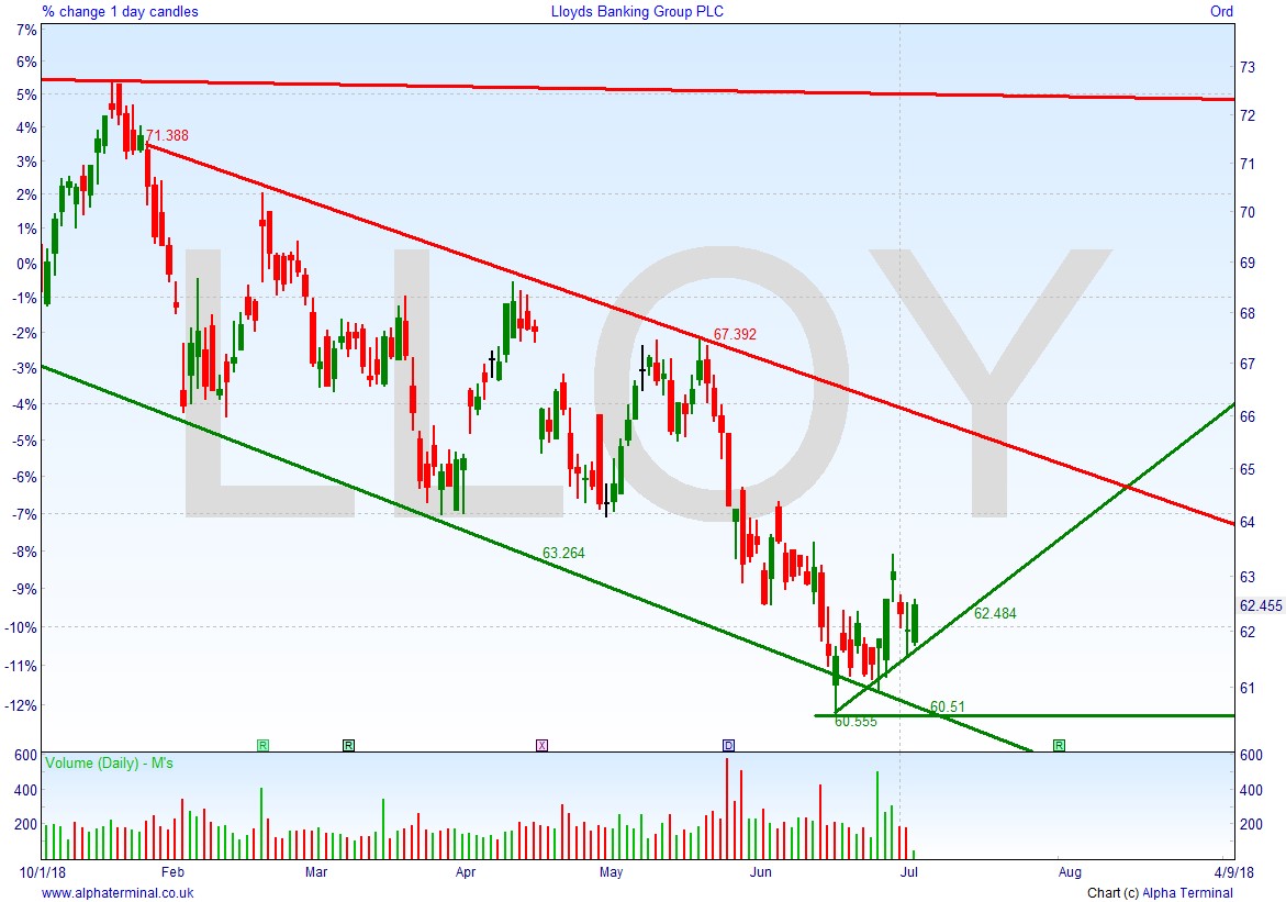 • Will the price fall towards lows of 61p (-2.3%)? or;