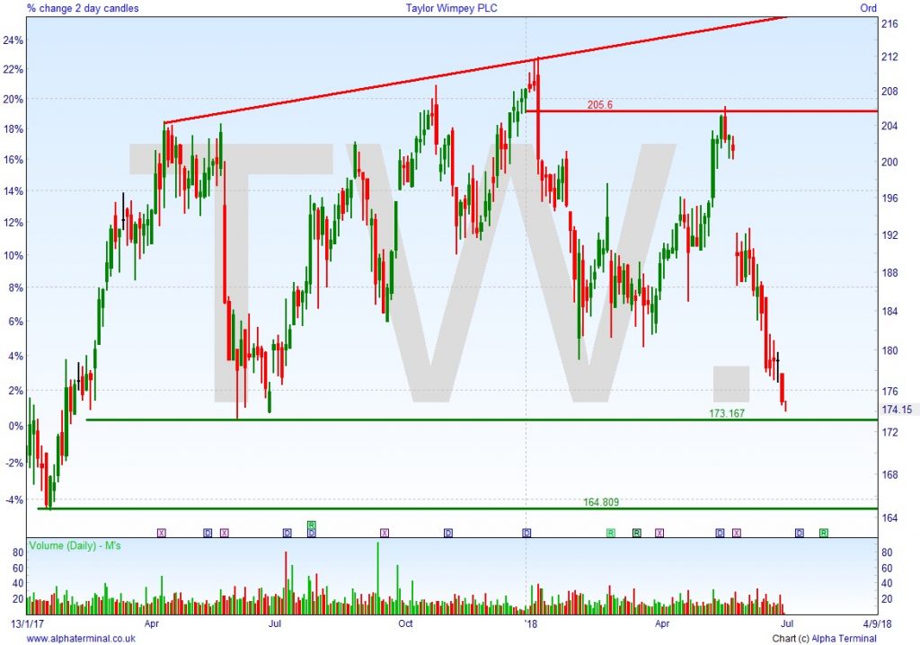 • Will the price fall towards lows of 164.8p (-5.4%)? or;