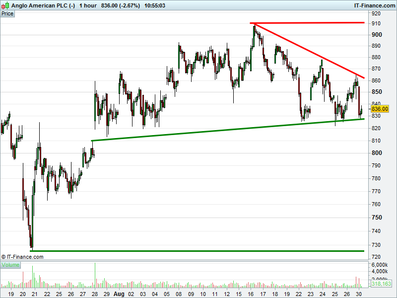 1. Will the price fall towards lows of 725p (-13%)? or;