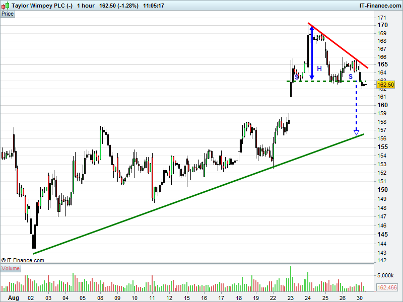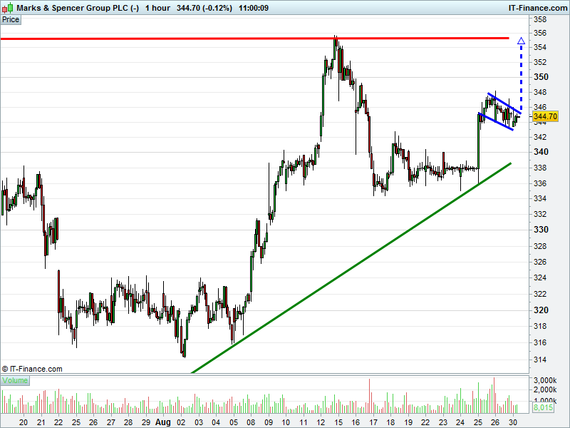 1. Will the price fall towards lows of 314p (-9%)? or;