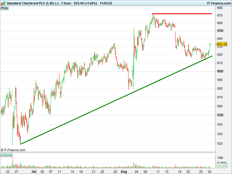 1. Will the price fall towards lows of 520p (-18%)? or;
