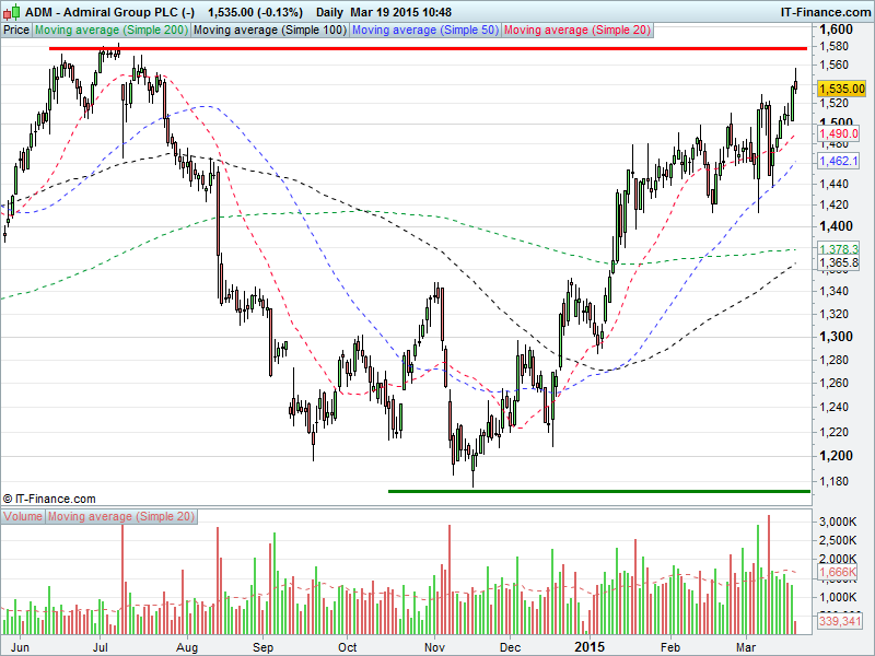 1. Will the price rise towards highs of 1580p? or;