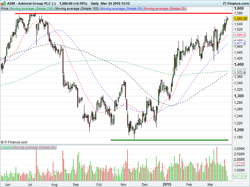 1. Will the price rise above highs of 1580p? or;