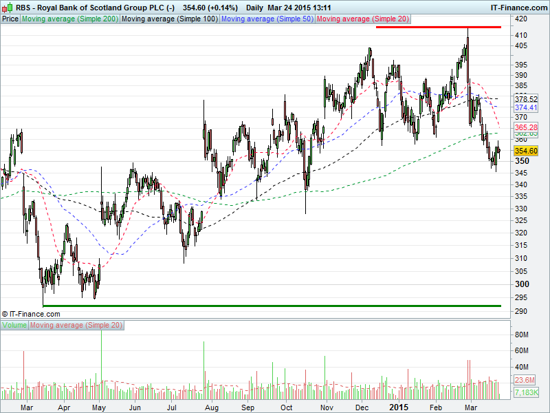 1. Will the price rise towards highs of 415p? or;