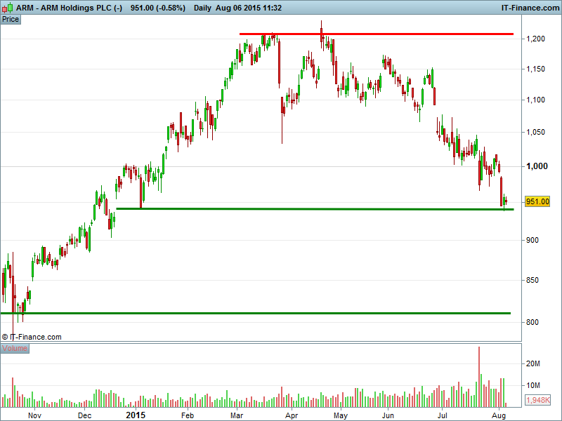 2. Will the price break below support at 950p?