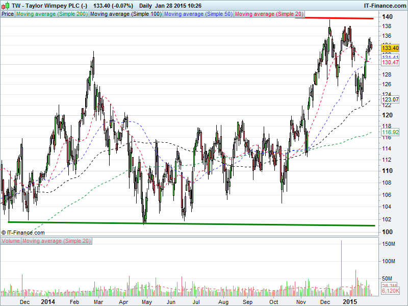 1. Will the price rise towards highs of 140p? or;
