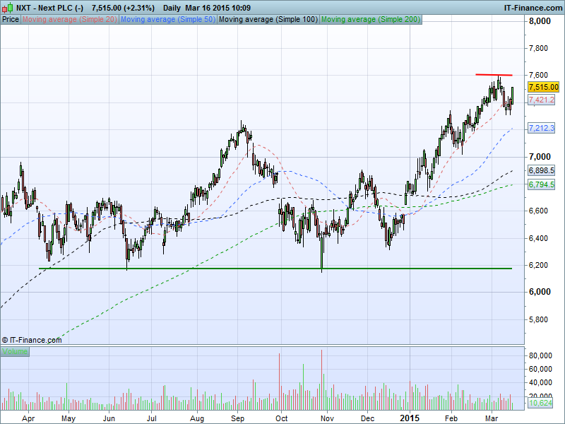 1. Will the price rise towards highs of 7606p? or;