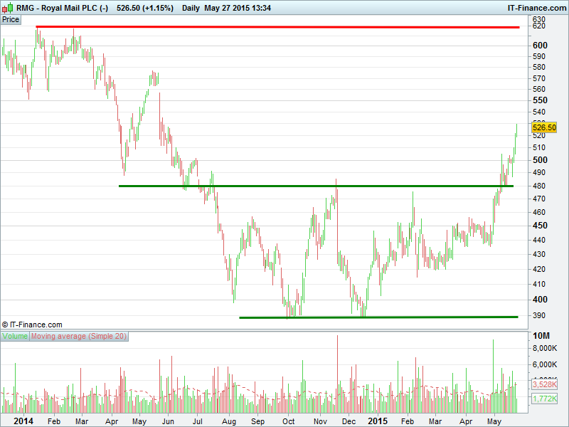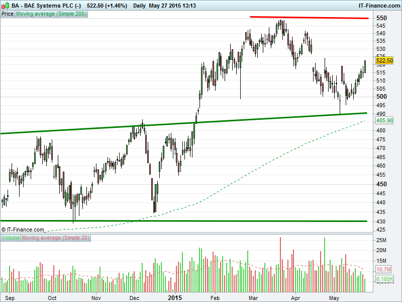 1. Will the price rise towards highs of 550p? or;