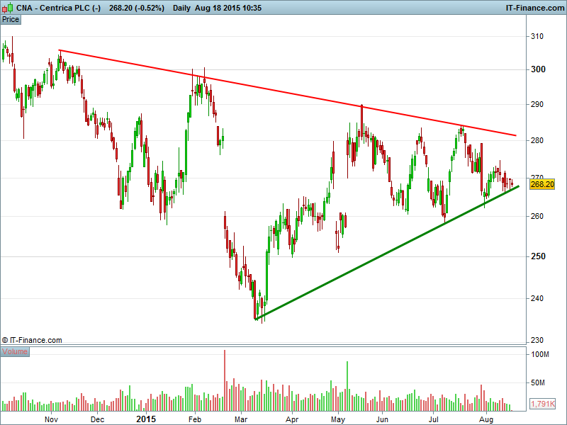 1. Will the price break upwards 16 Jul highs 283p? or;