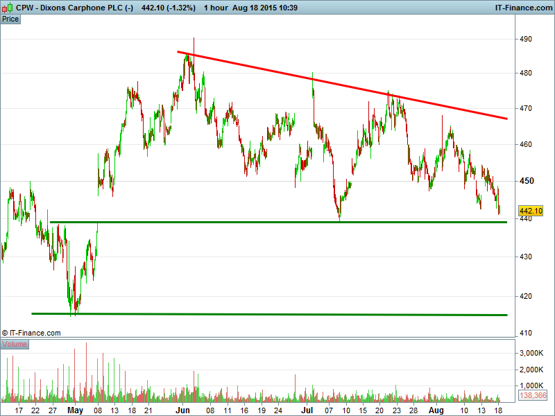 2. Will the price break below support at 439p?