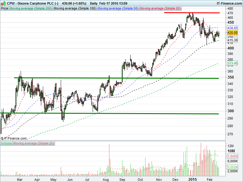 1. Will the price rise towards highs of 469p? or;
