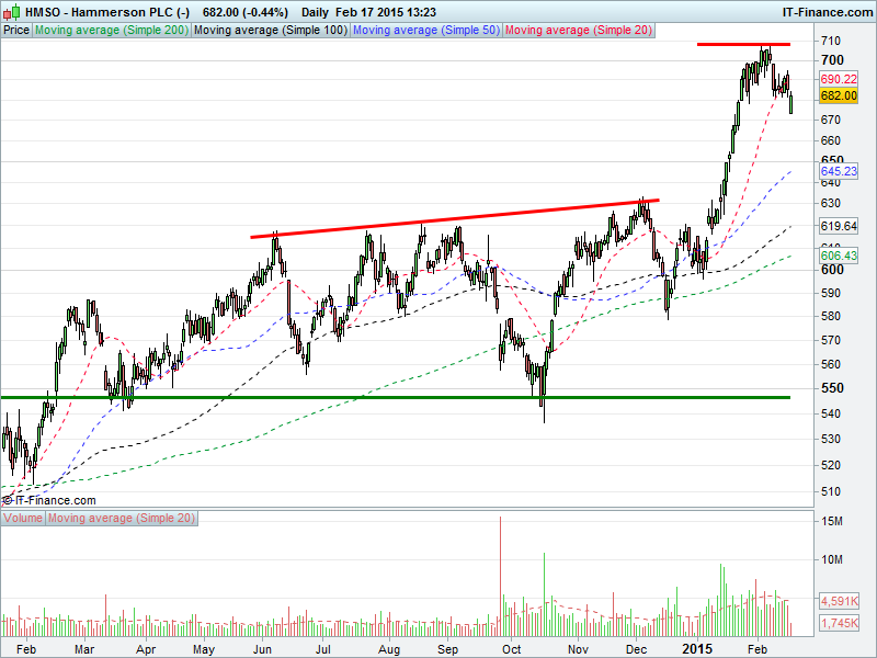 1. Will the price rise towards highs of 708p? or;
