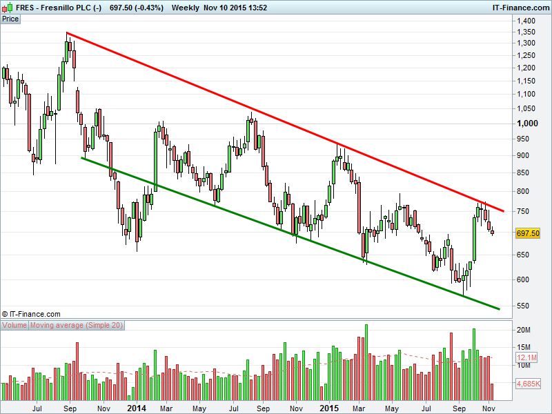 1. Will the price rise above highs of 750p? or;