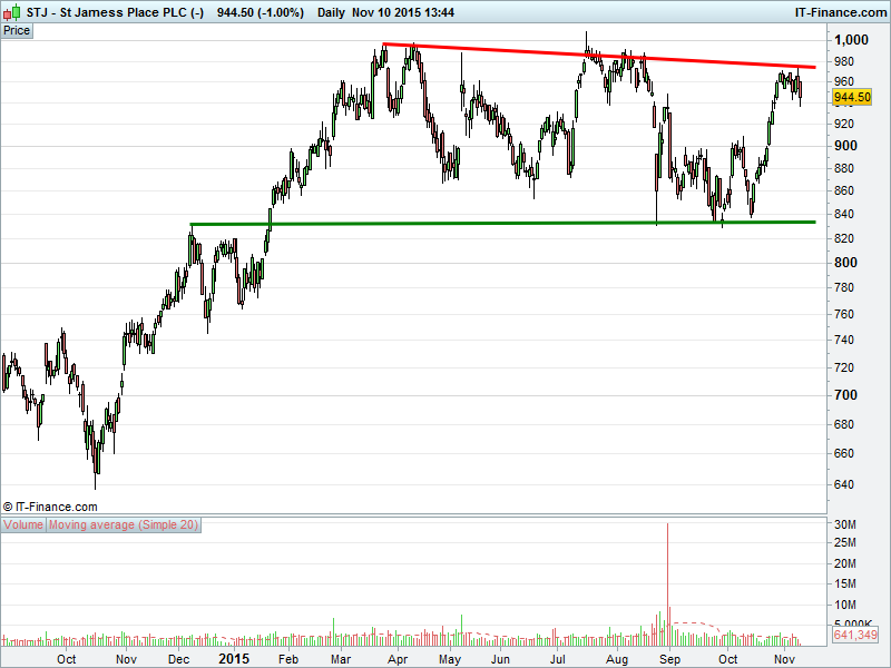 1. Will the price rise above highs of 970p? or;