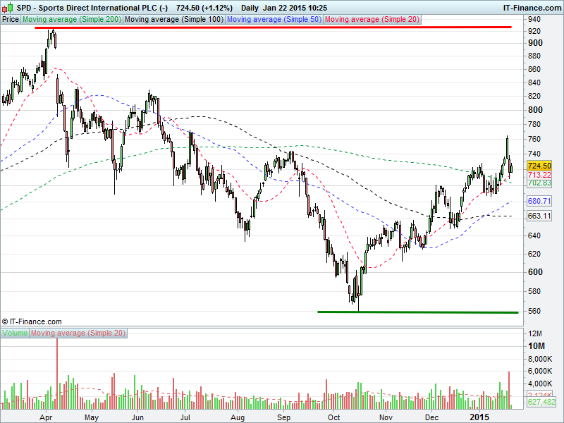 1. Will the price rise towards highs of 930p? or;