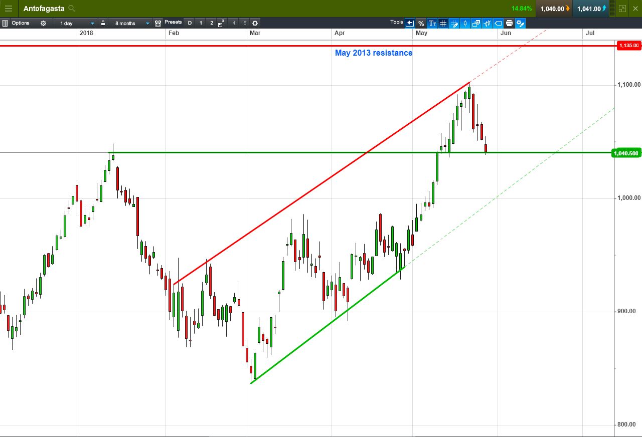 • Will the price fall towards lows of 1000p (-3.8%)? or;