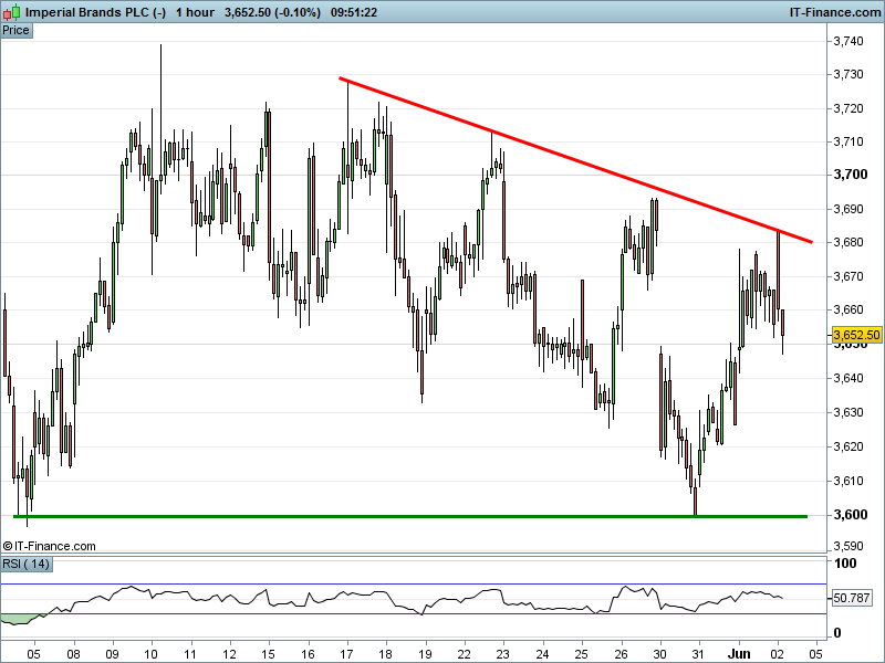 1. Will the price rise towards highs of 3740p (+2.4%) ? or;