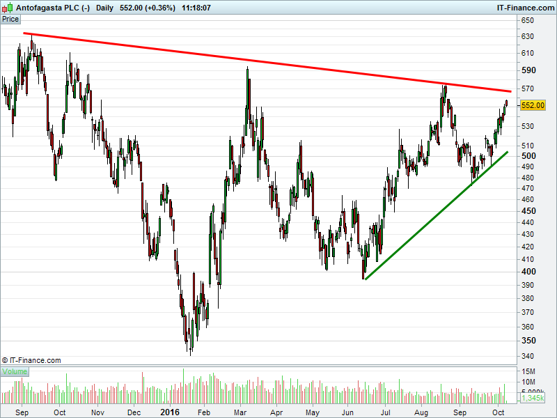 1. Will the price rise towards highs of 630p (+14%)? or;