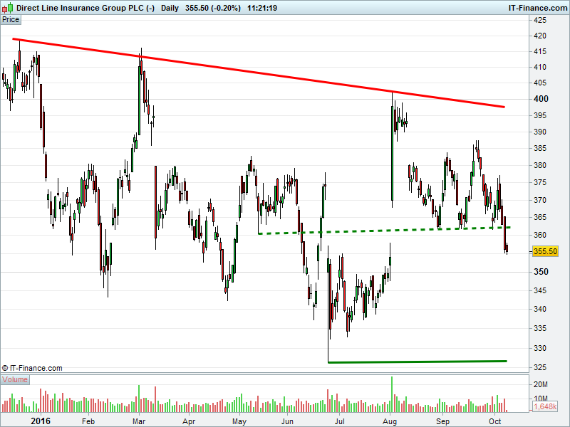 1. Will the price rise towards highs of 420p (+18%)? or;