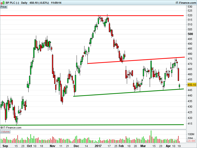 1. Will the price fall towards lows of 415p (-7.9%)? or;