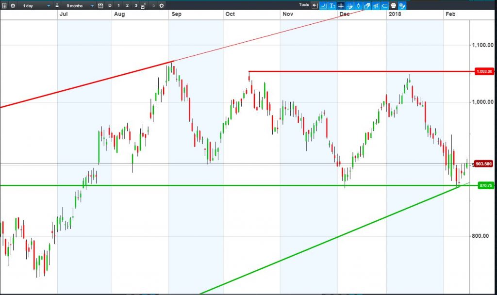 • Will the price fall towards lows of 870p (-3.7%)? or;