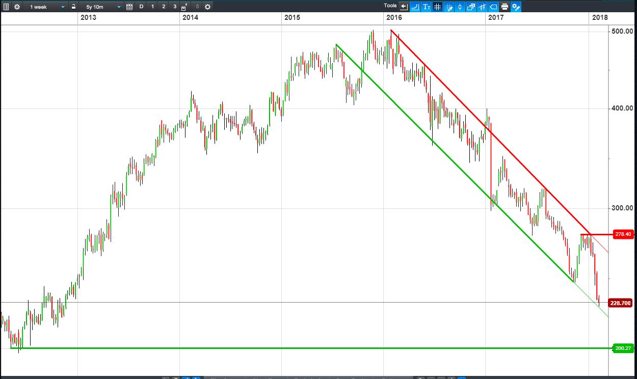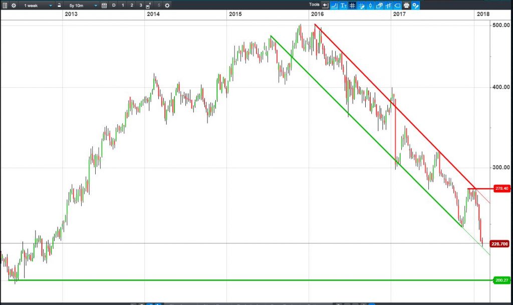 • Will the price fall towards lows of 200p (-12.5%)? or;